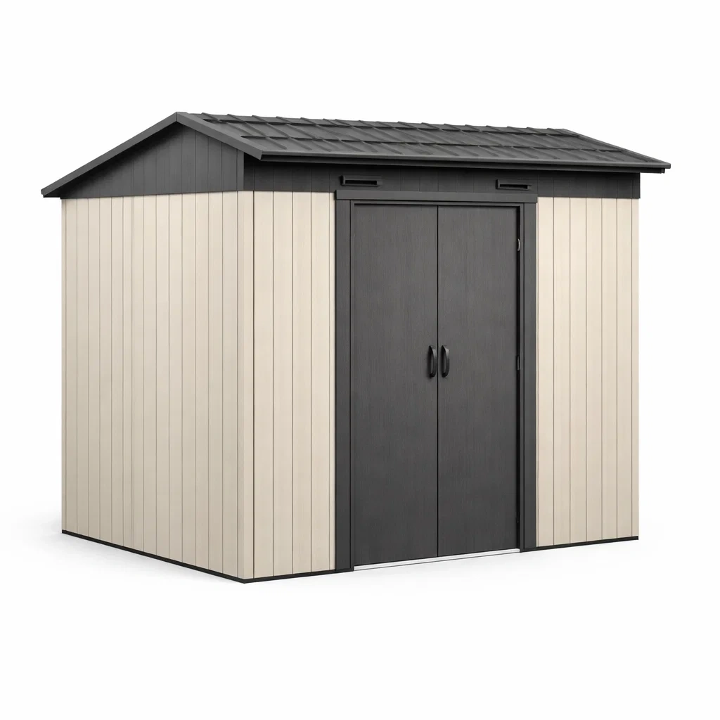 Abri de jardin en résine noir et beige 240 x 185 x 230 cm