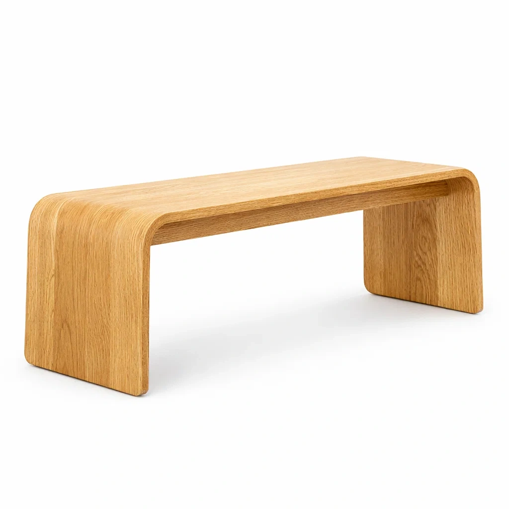 Ce banc est fabriqué en chêne courbé avec une finition naturelle.